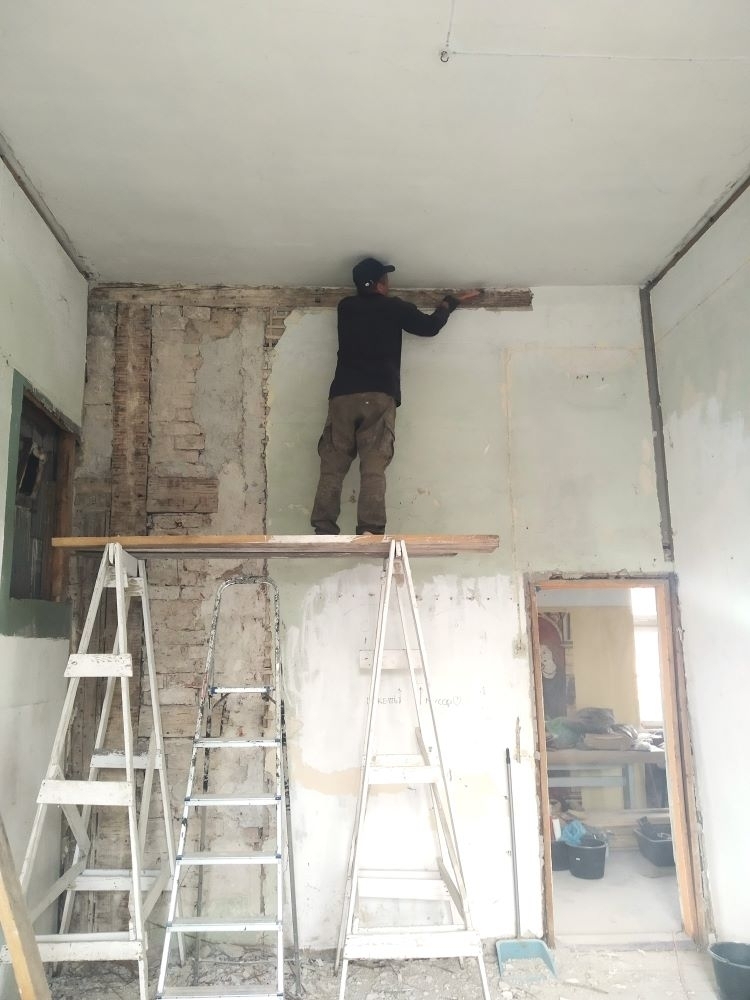 Под мастерскую выделили кабинет с табличкой «Главный инженер». Именно здесь в 1997 году началась новейшая история Инстербурга: в этой комнате работали первые энтузиасты, взявшиеся за возрождение замка. Помещение было полностью готово уже осенью, но пустовало из-за отсутствия отопления. Сейчас его постепенно вводят в работу.
