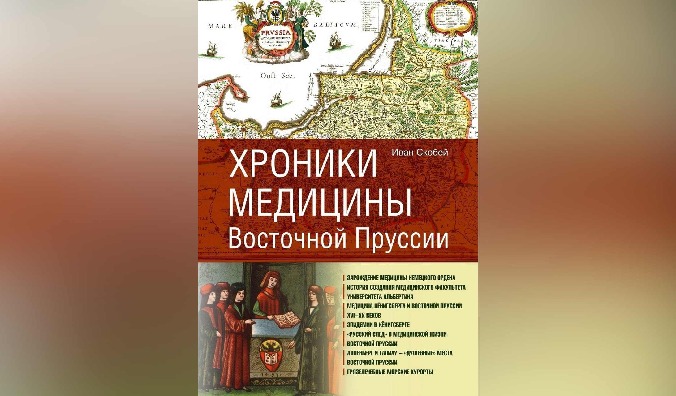 Хронология книги охватывает огромный период — от конца XIII века до 1948 года. Автор начал с первых врачей времен Тевтонского ордена и закончил немецкими медиками, которые уже после войны лечили граждан СССР. По словам Ивана Скобея, это первое систематическое исследование вопроса — не только на русском языке, но и вообще. «В моих планах защитить этот труд в виде кандидатской диссертации», — отмечает он.