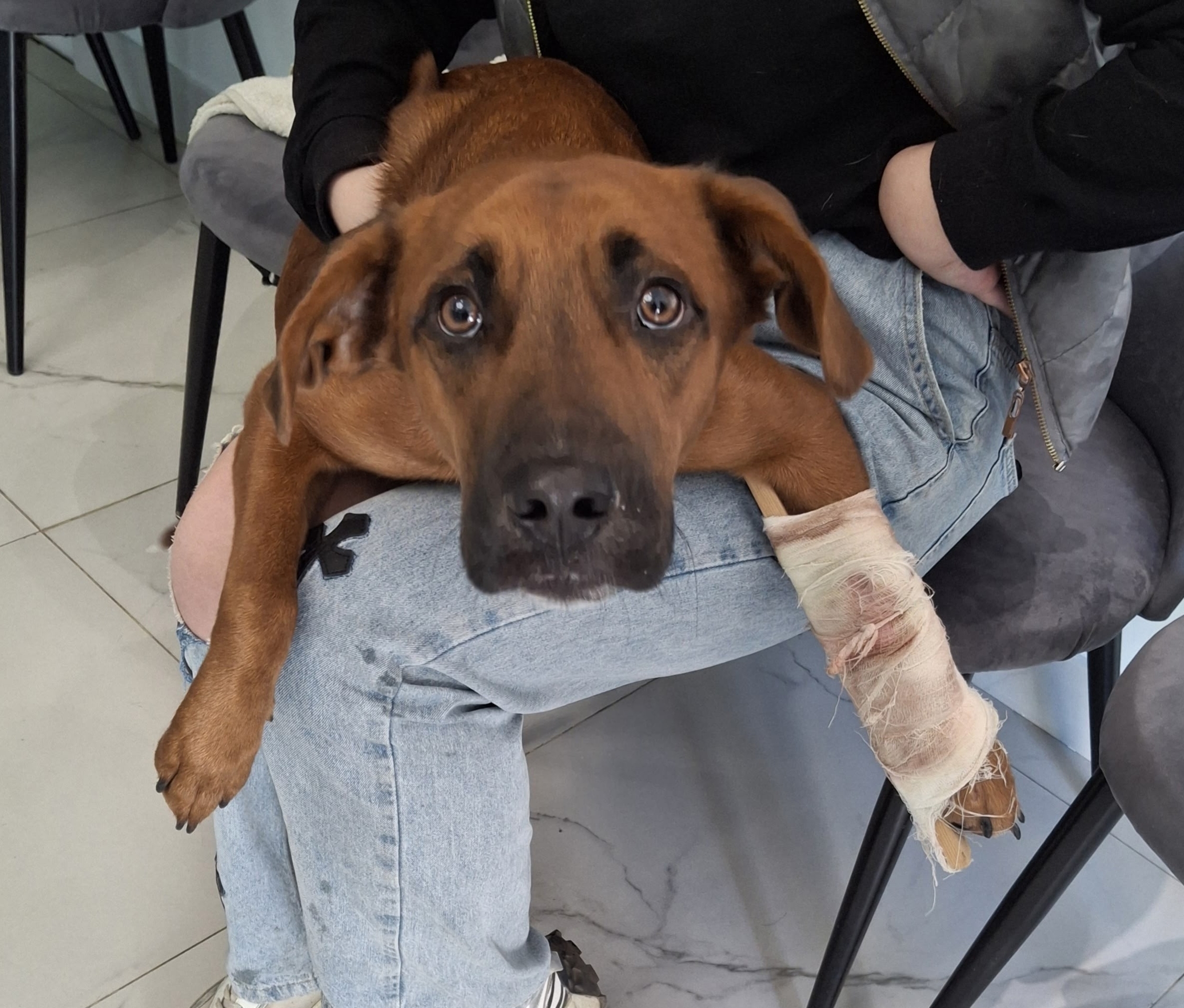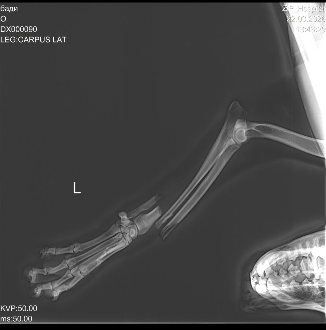 Ситуация была плачевной, сломаны две косточки. Из-за того, что затянули время и он долго лежал с открытой раной, на лапе начался некроз мягких тканей. От боли пёс даже пытался отгрызть себе лапу…