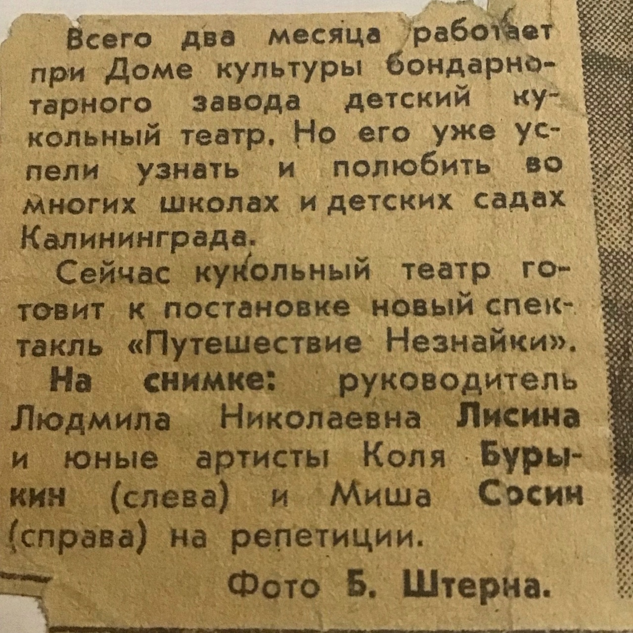 «В клуб при заводе Коля ходил ещё ребёнком, играл там в кукольном театре и даже засветился в газетной заметке тех лет», — говорит Ирина.