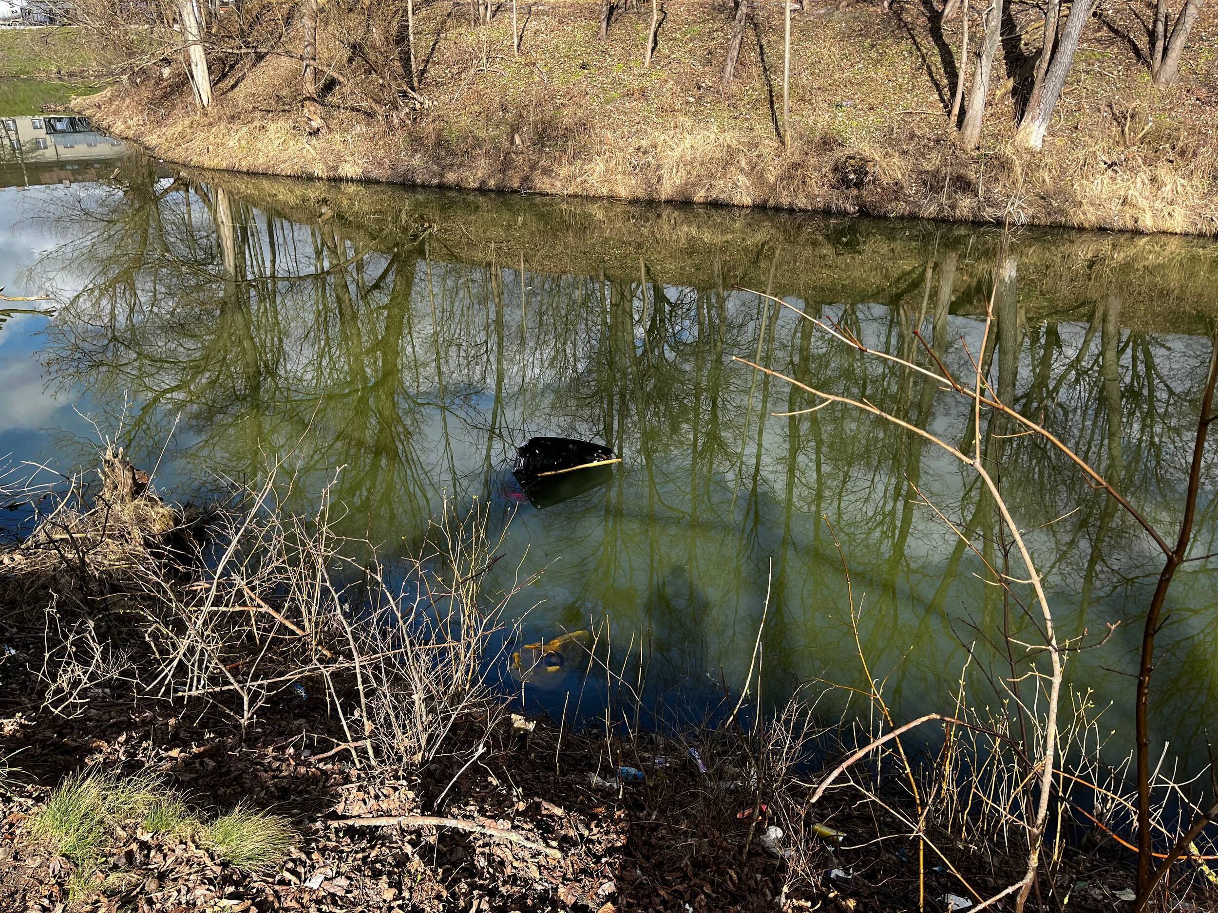 Утром 21 марта очевидцы заметили в водоёме, расположенном на пересечении улиц Киевской и проспекта Калинина, чёрную легковушку. Ров с водой окружает бастион Хаберберг, расположенный в Южном парке.
