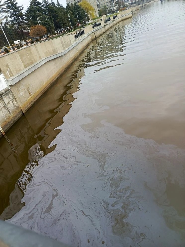 «Вышла и обалдела, — делится собеседница «Клопс». — Вдоль берега целая лужа цветная течёт. Я не знаю — солярку скинули или что-то другое».