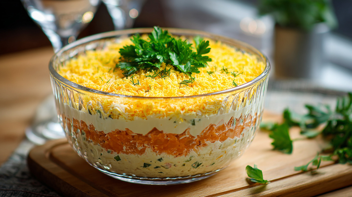Почему этот салат так называется? Всё просто: его верхний слой из тёртых желтков напоминает яркие цветы на снежной поверхности. На праздничных столах «Мимоза» давно соседствует с оливье и селёдкой под шубой. Кулинары рассказали «Клопс», как приготовить классику любого застолья.