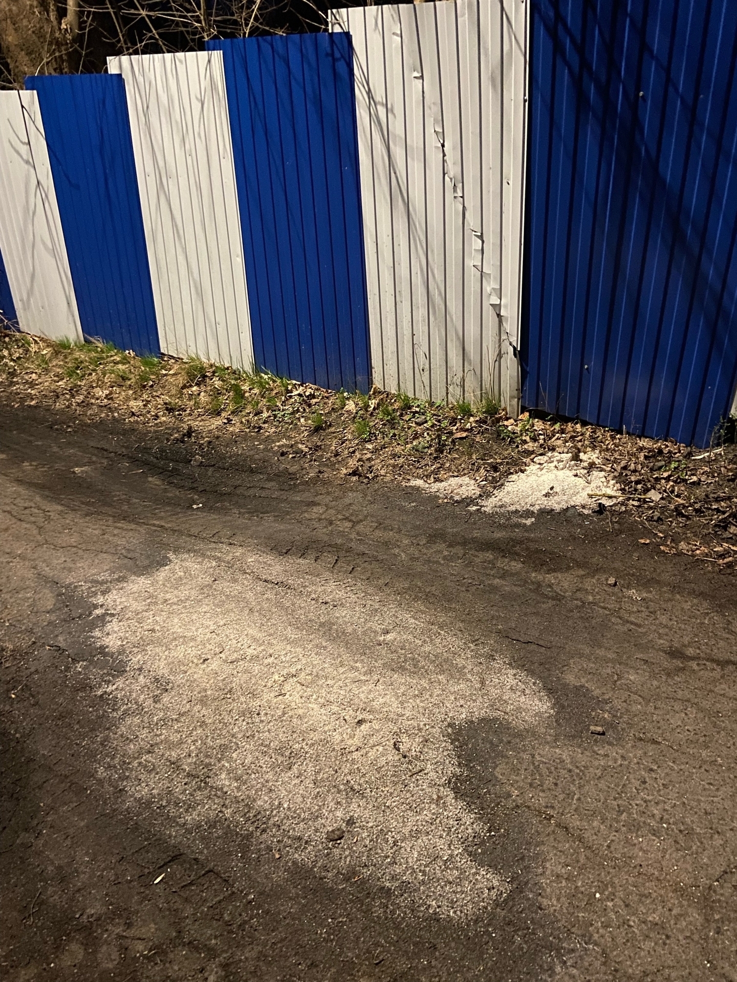 Кто именно и когда соль выбросил, Александр не видел, но внешне она точно больше похожа на техническую, чем на пищевую: кристаллы крупные, серые. По его мнению, маловероятно, что её мог принести кто-то из обычных людей. А вот ящик с реагентом для посыпки дорог зимой в 100-150 метрах от этого места он замечал.