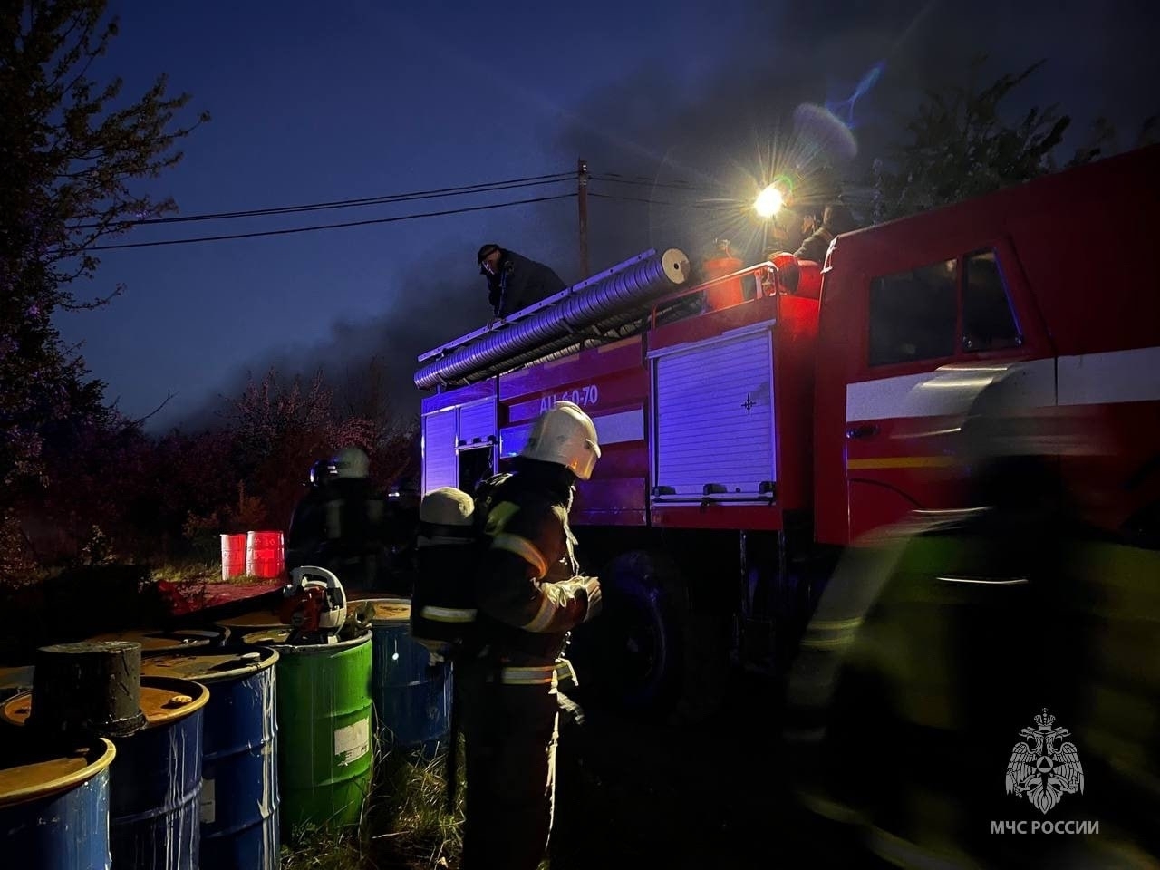 Тушили 65 пожарных: в посёлке Майское загорелся битум в металлических бочках