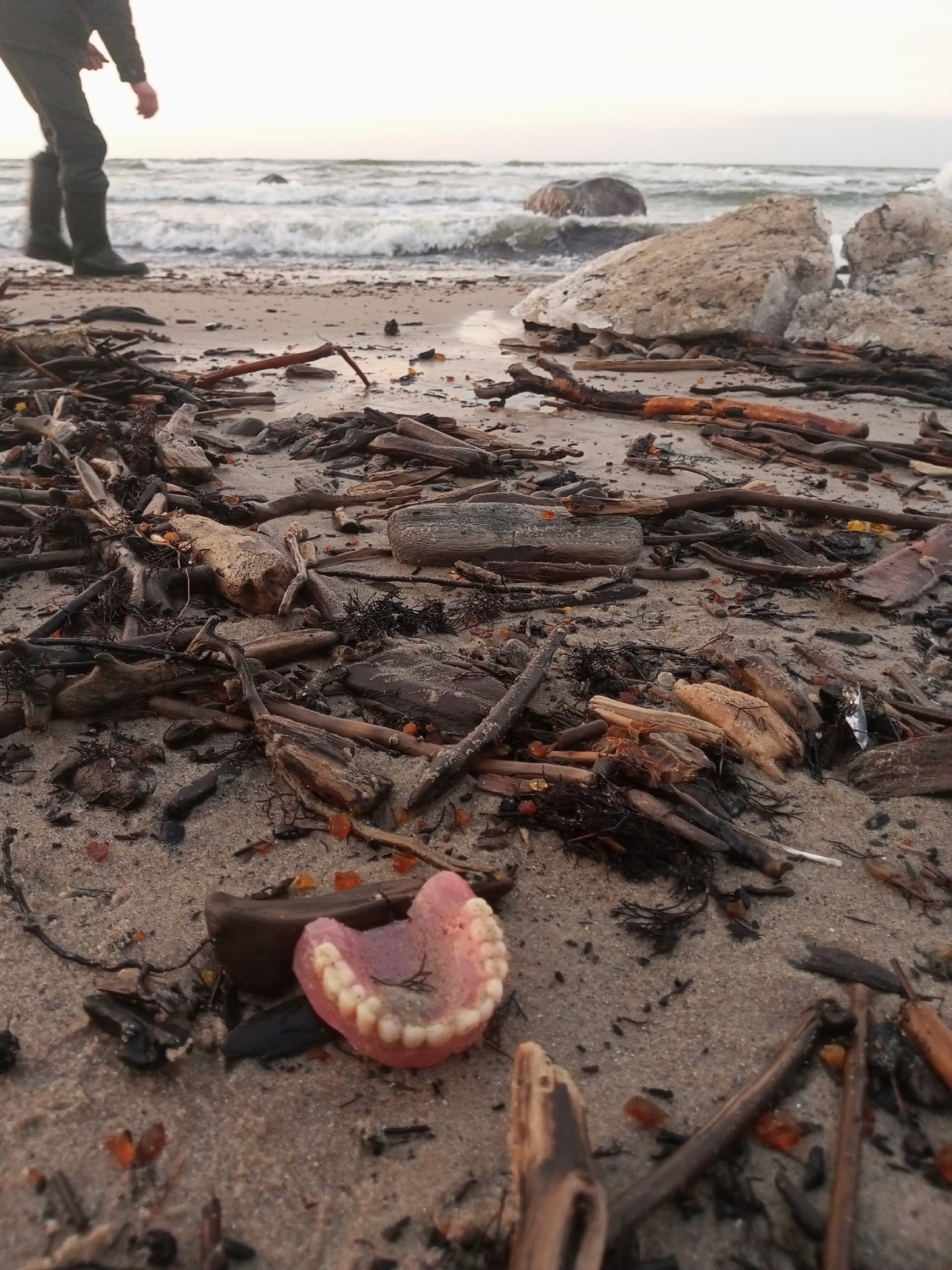 «У туристов челюсти выпадают при виде того, сколько у нас янтаря в свободном доступе!» — прокомментировал Вадим другую необычную находку. По его словам, на следующий день съёмный протез уже кто-то прибрал к рукам.