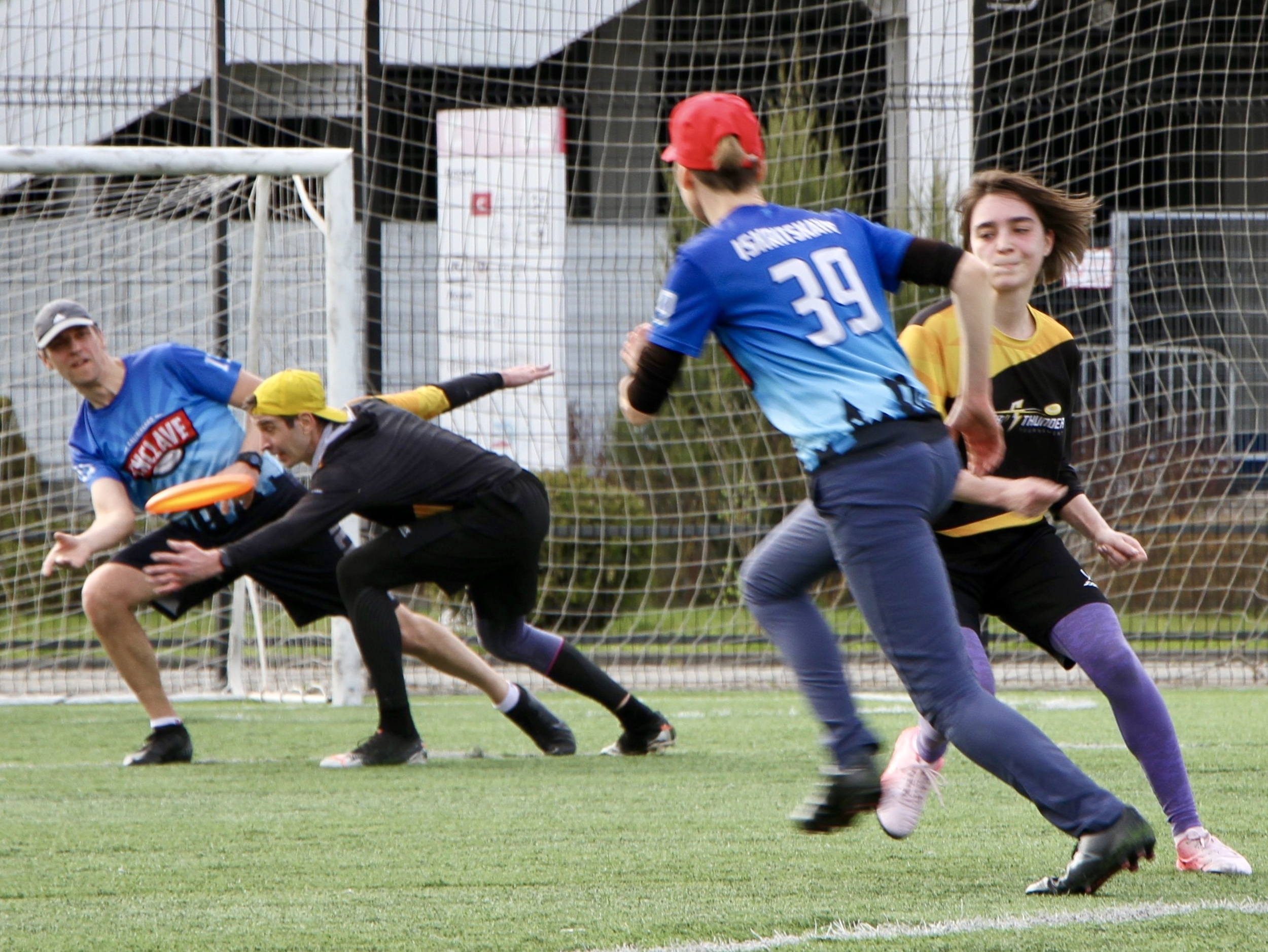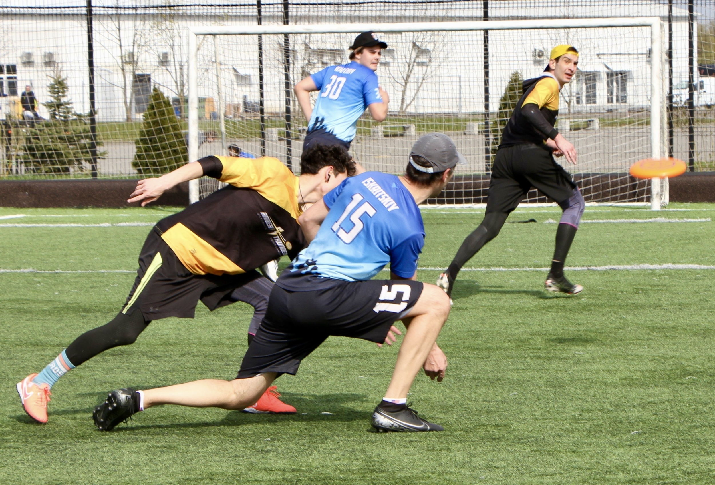 А рядом играли в алтимат с летающим диском большего размера. Это уже динамичный командный формат. На поле — быстрые передачи, перехваты, резкие ускорения, но всё бесконтактно. При этом сохранялся важный принцип алтимата — честная игра без судей, где сами участники следят за соблюдением правил.