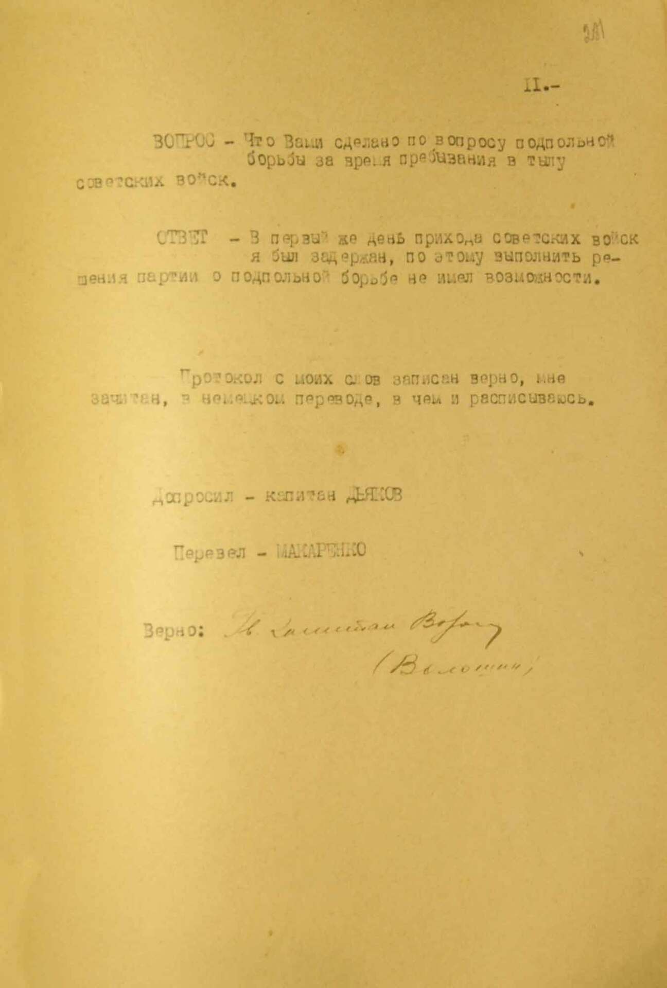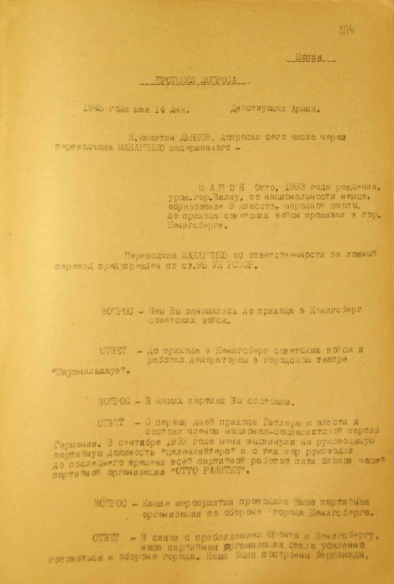 Протокол допроса целленляйтера НСДАП Отто Машона. 14 мая 1945 года. Кёнигсберг