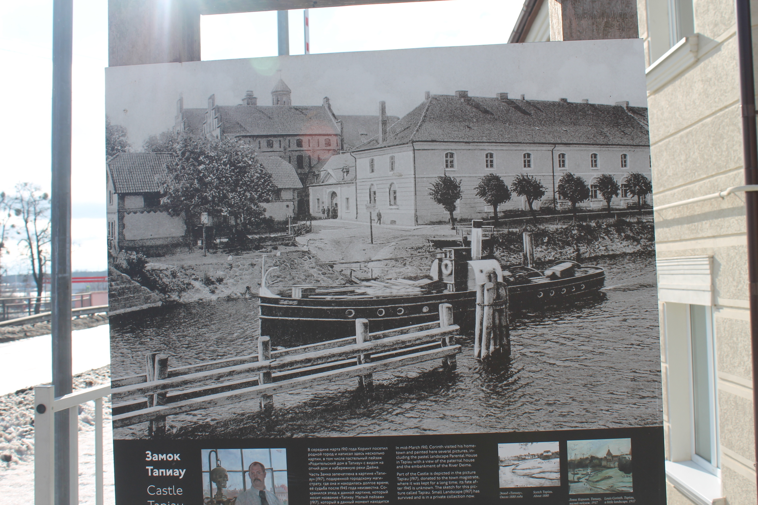 В город заезжаем со стороны замка. «В 1265 году была заложена орденская крепость на месте прусской. Изначально замок стоял в другом месте — в районе современной площади Гвардейска, позднее его перенесли на восточный берег Деймы. Находилось строение в заболоченной местности: по одной из версий «тапиов» пришло из прусского языка и, возможно, означает «тёплое место». Действительно, в обширной пойме двух рек, Деймы и Прегеля, часто поднимались туманы. В середине XVI века Тапиау был перестроен. Это было любимое место герцога Пруссии Альбрехта Бранденбургского, который здесь и скончался. В замке располагался архив Тевтонского ордена. Известный факт: по пути в Кёнигсберг в Тапиау останавливалось русское Великое посольство. Сегодня замок находится в аренде у инвестора, создающего музейно-туристический комплекс», — рассказал эксперт.