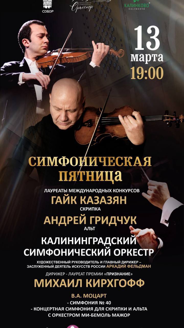 — О, этот концерт готовится уже два года! Однажды в Армении я познакомился с Гайком Казазяном, это один из самых известных в России скрипачей. Гайк мне рассказал, что планирует дать концерт в Калининграде. И я предложил вместе сыграть симфонию Моцарта. Он переговорил с дирижёром Михаилом Кирхгоффом, всё согласовал…