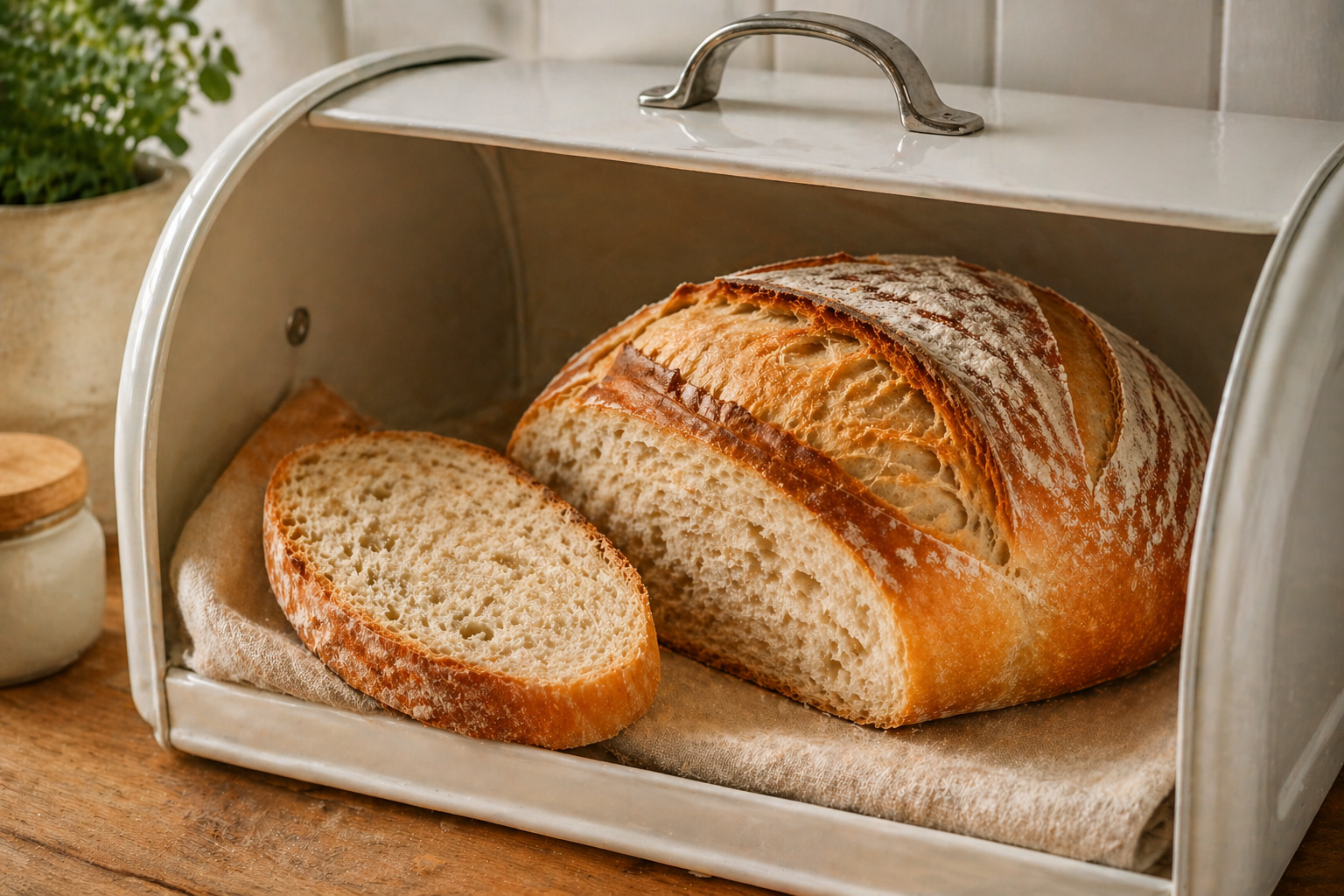Для хранения выпечки идеально подойдёт хлебница с отверстиями, так как они помогают воздуху циркулировать и не дают влаге накапливаться. Чтобы усилить эффект, внутрь можно положить хлопковые или льняные мешочки, которые впитают лишнюю жидкость.