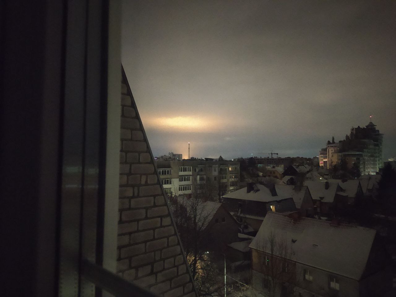 Калининградцев напугали рыжие всполохи над чашей «Ростех Арены». Максим принял непонятное свечение за пожар и прислал «Клопс» видео, сделанное в ночь на пятницу, 30 января.