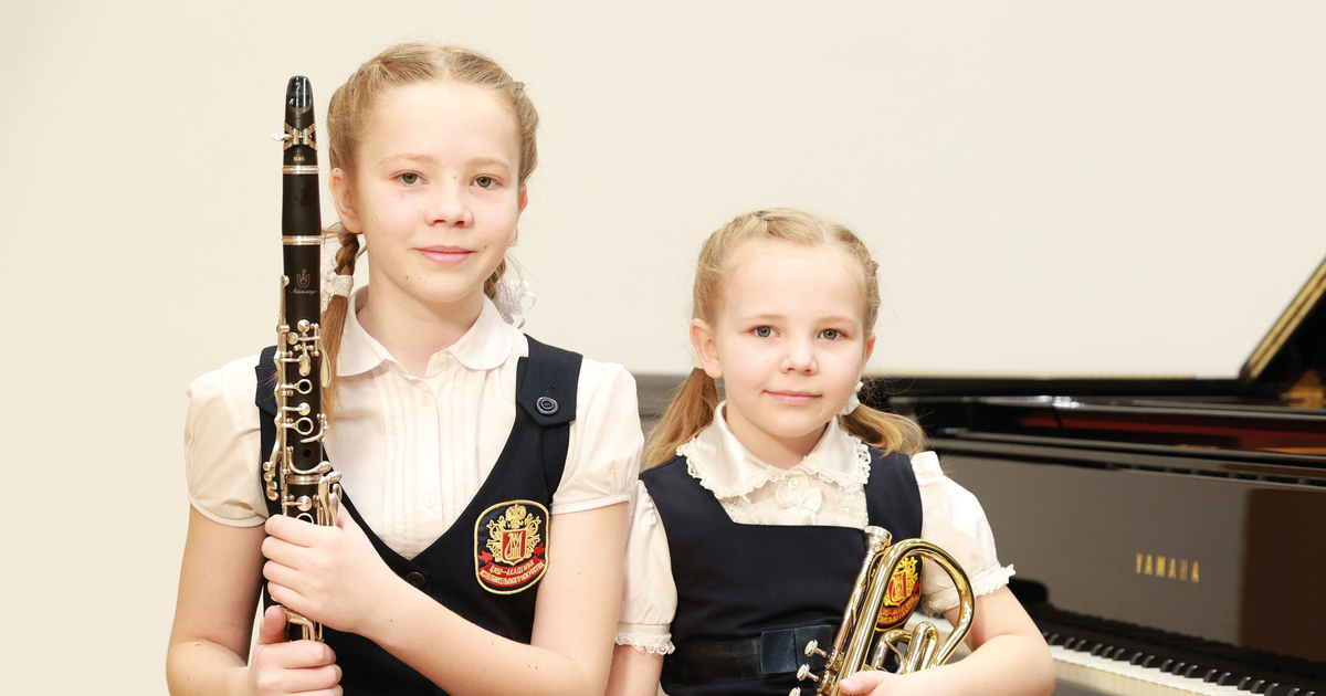 Девочки учатся играть на кларнете и корнете