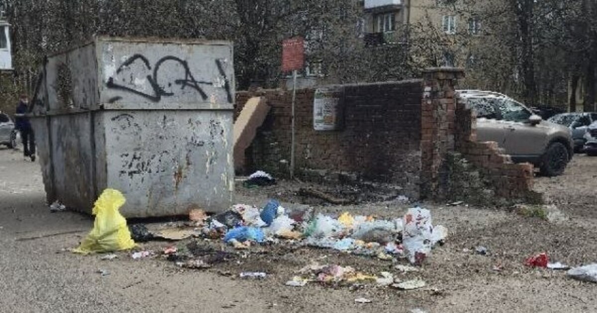 Площадка возле контейнеров стабильно завалена мусором, а часть отходов кочует по округе