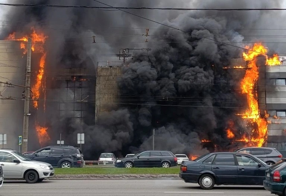 По словам свидетелей, рядом с полыхающим зданием уже загорелись две машины