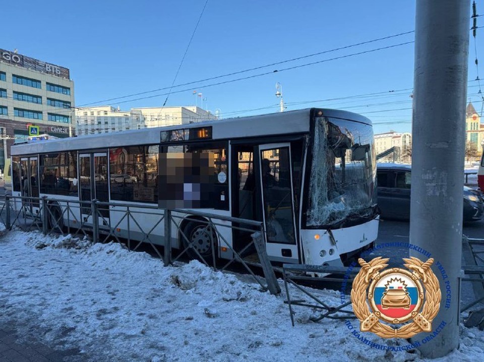 Городской автобус врезался в столб на улице Черняховского