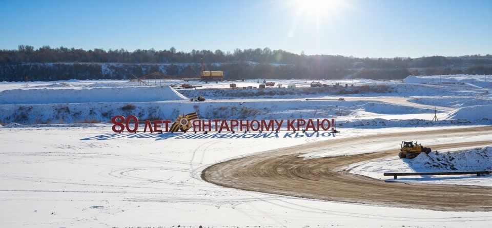Надпись «80 лет янтарному краю!» красуется в Приморском карьере, где добывают янтарь