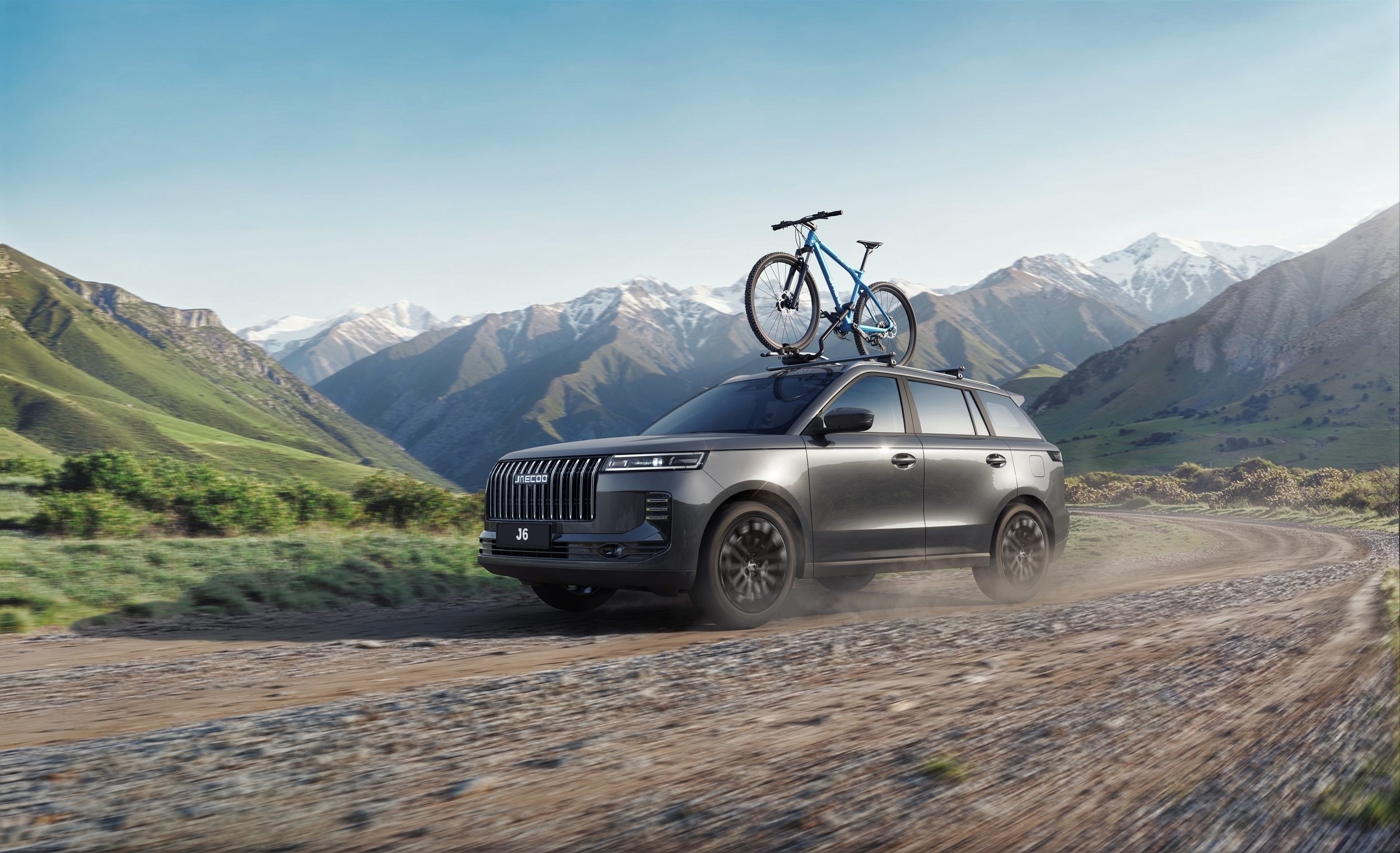 J6 сочетает выразительный современный дизайн и инженерную практичность для путешествий за пределами города. Фирменная решётка радиатора, строгая геометрия кузова и динамичный силуэт формируют уверенный образ. Для российского рынка длина кузова увеличена до 4509 мм при ширине 1860 мм и высоте 1650 мм, что придаёт модели дополнительную солидность и устойчивость на дороге.