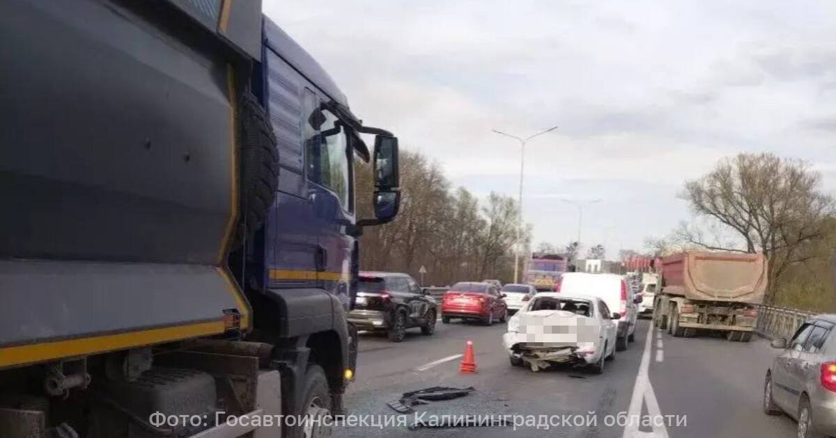 Клопс Грузовик смял легковушке капот и подтолкнул машину